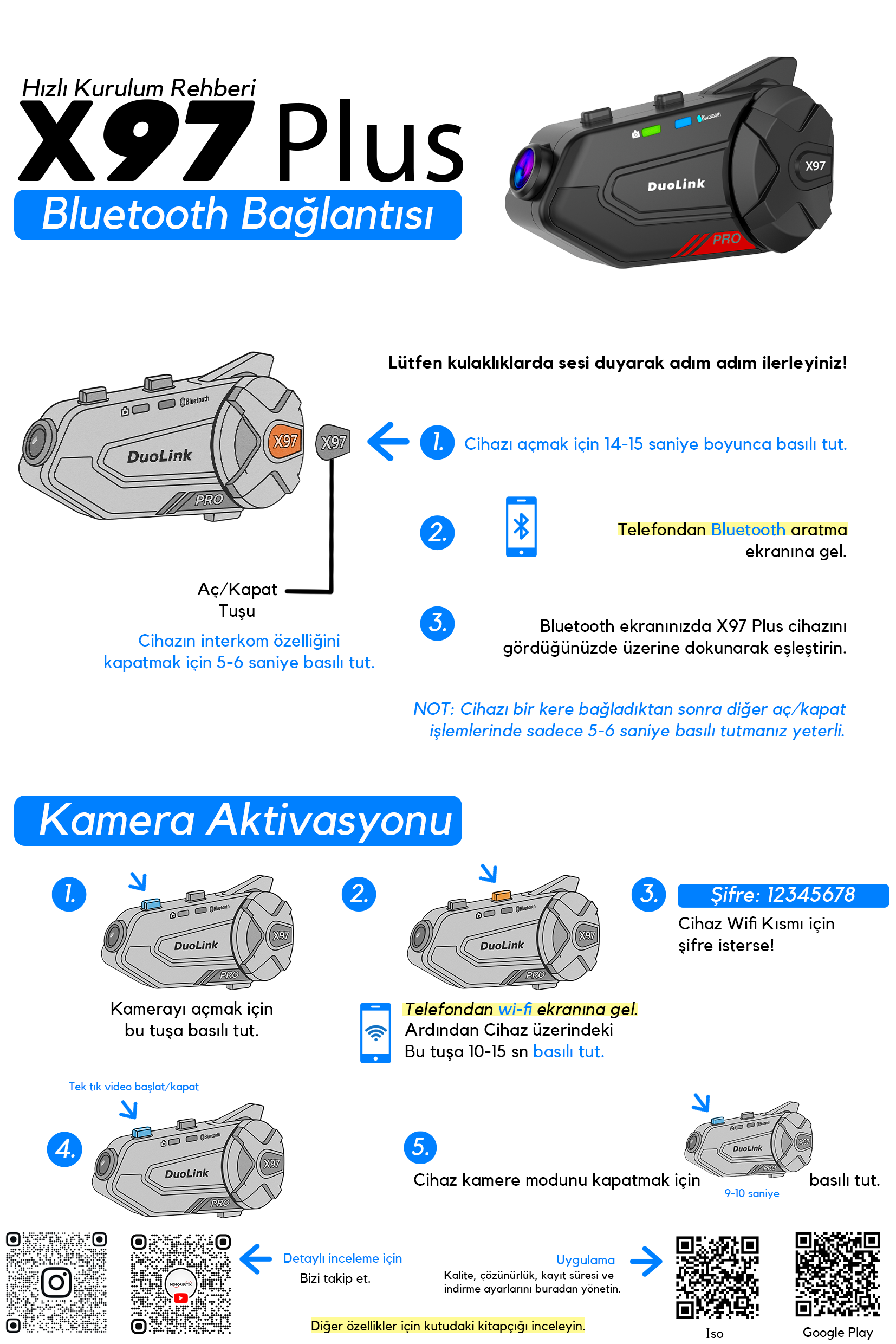 DuoLink X97 Pro İnterkom Motosiklet Kameralı 6 Kişi Grup Bluetooth Kask Intercom Video Kayıt Kulaklık